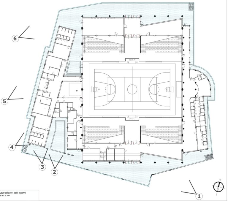L’intervento di ristrutturazione e ammodernamento è finalizzato alla salvaguardia e valorizzazione dell’immobile e prevede, inoltre, la realizzazione di un’area destinata a parcheggio e la costruzione di una struttura tensostatica dedicata alle attività di riscaldamento e allenamento degli atleti.