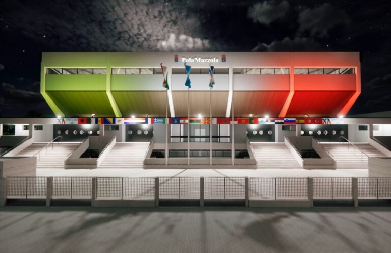 Il palazzetto conserva ancora oggi la facciata principale di quello che prima era l’ingresso principale dello storico stadio Mazzola. Oltre all’ingresso principale, che si trova in via Cesare Battisti di fronte alla strada che porta al ponte Punta Penna Pizzone, ha un altro ingresso dal lato opposto del palazzetto, ovvero in via Venezia.